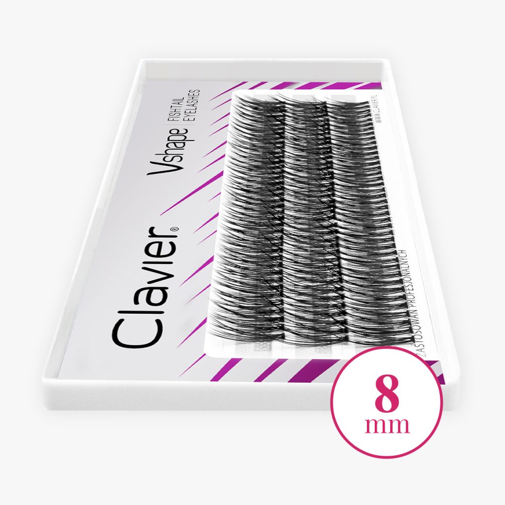 Ciglia a ciuffetti effetto Kardashian a forma di V devono la loro immensa popolarità alla celebrità Kim Kardashian, famosa per la sua incredibile varietà di ciglia. Il segreto di questi ciuffi sta nella loro forma insolita, descritta in Polonia e nel mondo come rondine, V, Kardashian o coda di pesce. Ogni ciuffo è più lungo agli angoli esterni e la lunghezza delle ciglia diminuisce gradualmente verso il centro del ciuffo.