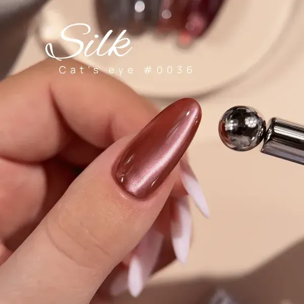 Gel Polish Cat’s Eye Silk è una collezione di 8 tonalità ibride di smalto che combinano una texture delicata con un effetto setoso da occhio di gatto. La collezione ti permette di creare una varietà di design con una lucentezza sottile e setosa. I colori sofisticati e la profondità dell’effetto cambiano a seconda dell’angolo di visione, dell’illuminazione e della tecnica di applicazione, conferendo a ogni design un carattere unico e multidimensionale.