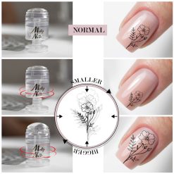 Vuoi riflettere una nail art, ma non si adatta all’unghia? O forse preferiresti che fosse un po’ più grande? Ora puoi regolare la dimensione del motivo riflesso con il timbro regolabile. Un timbro è un modo per creare nail art sulle unghie in modo facile, rapido e preciso.