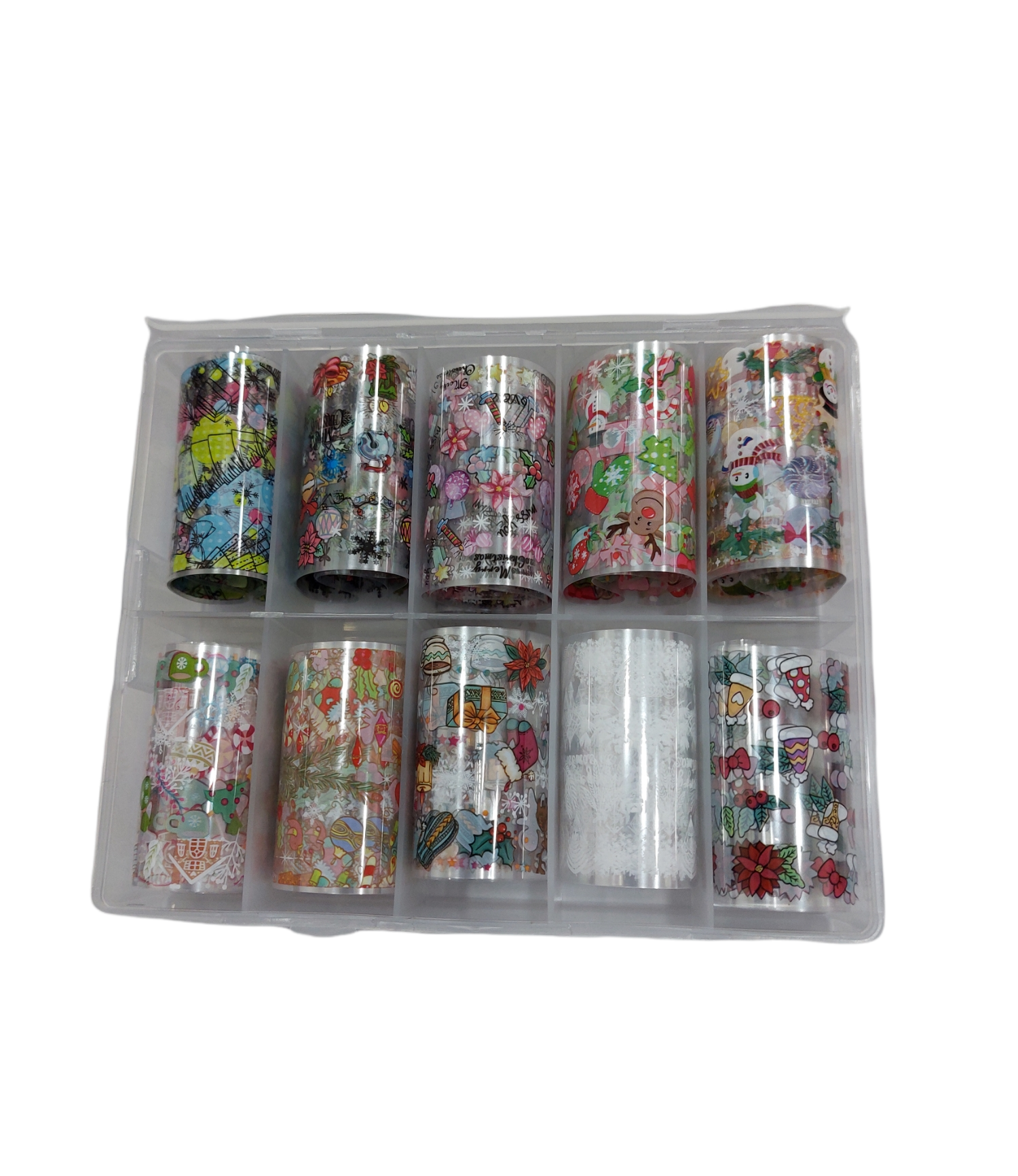 Set di 10 foil con stampe diverse e base trasparente, renderanno le vostre unghie uniche e particolari, รจ facile da usare.